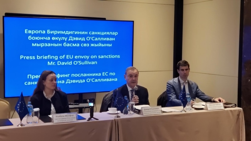 European Union sanctions envoy David O’Sullivan arrived in Bishkek for high-level meetings with Kyrgyz officials amid concerns that some financial channels and trade flows in Kyrgyzstan are being used to circumvent sanctions against Russia.