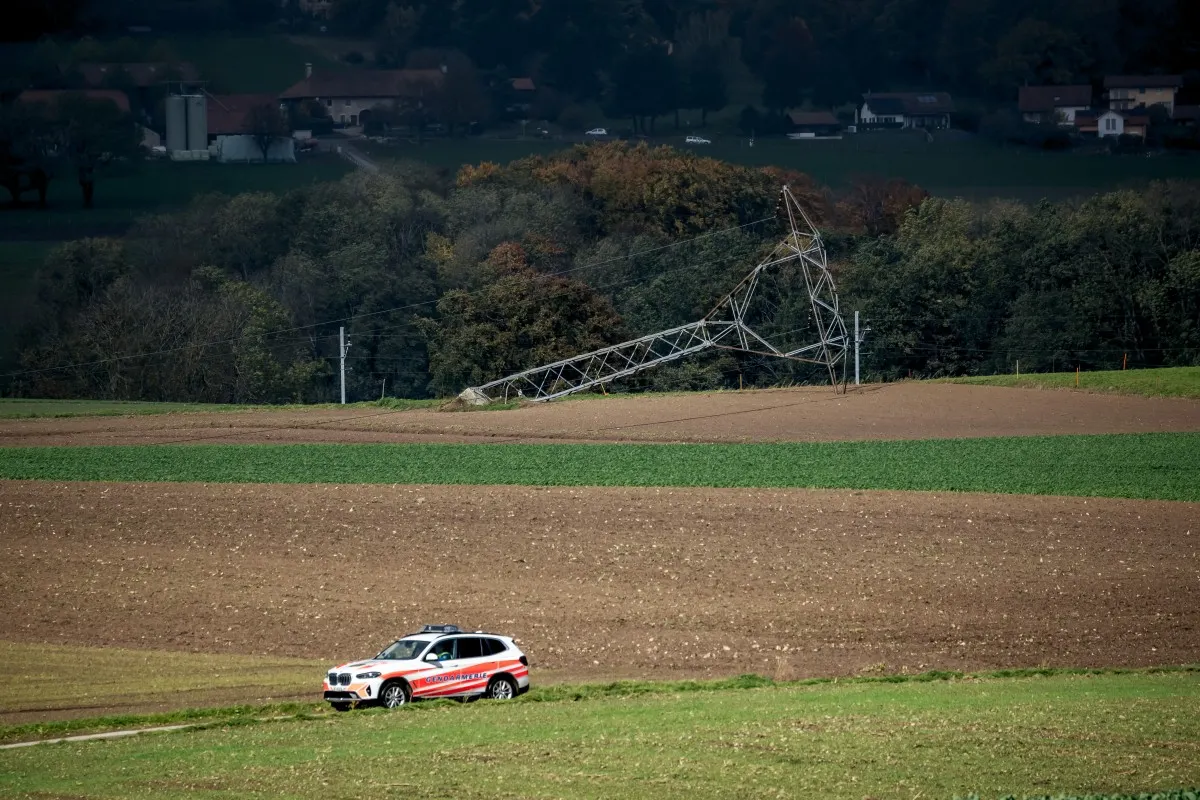 In Bière (Vaud), a wind-blown high-voltage power line pylon fell to the ground, but no injuries were reported.