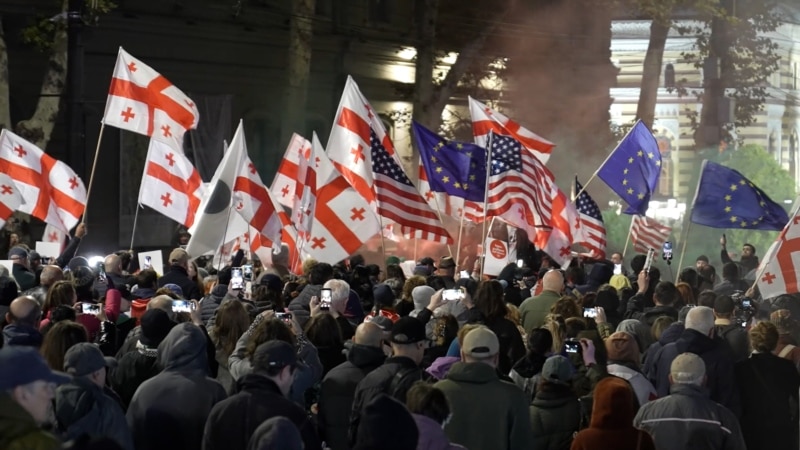 Opponents of Georgia’s ruling party protested in Tbilisi on October 26, marking one year since parliamentary elections that international monitors said were seriously flawed. The Georgian Dream party’s decision to halt EU accession talks soon after the election set off a movement of nightly protests that has continued uninterrupted for 333 days.